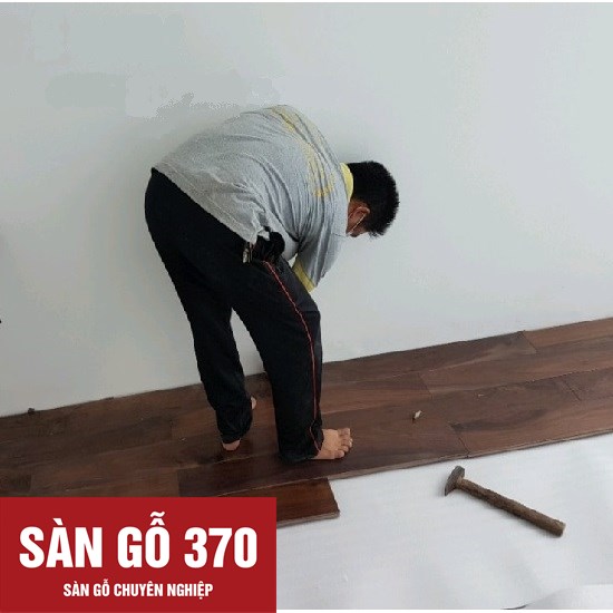 Phương pháp thi công theo kiểu nối tiếp đơn giản. Chú ý sàn gỗ phải để cách chân tường tối thiểu 1cm tạo khe co giãn cho sàn .